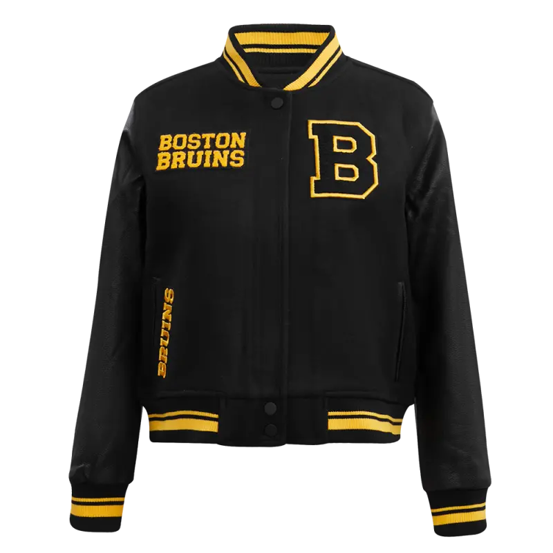 NHL BOSTON BRUINS RETRO CLASSIC WOMEN’S RIB WOOL VARSITY JACKET (BLACK\/YELLOW)
