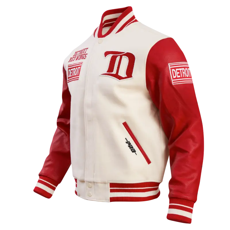 NHL DETROIT RED WINGS RETRO CLASSIC MEN’S RIB WOOL VARSITY JACKET (EGGSHELL\/ RED)
