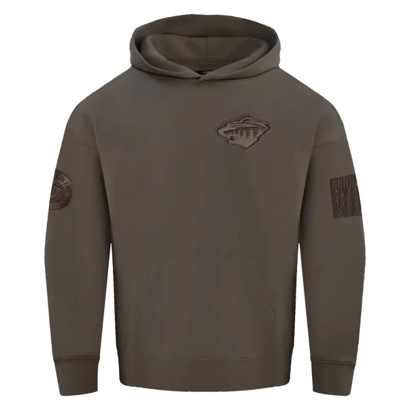 NHL MINNESOTA WILD NEUTRAL MEN’S DROP SHOULDER PULLOVER HOODIE (DARK TAUPE)