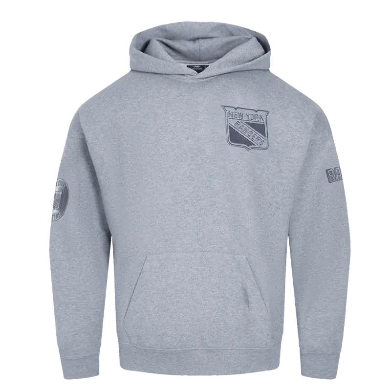 NHL NEW YORK RANGERS NEUTRAL MEN’S DROP SHOULDER PULLOVER HOODIE (DARK HEATHER GRAY)