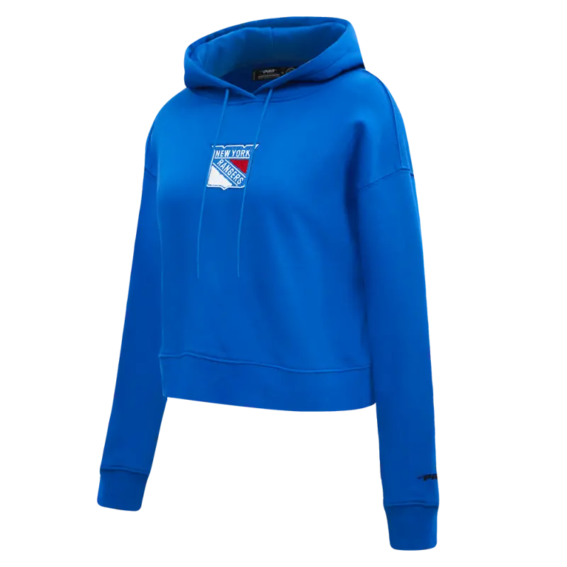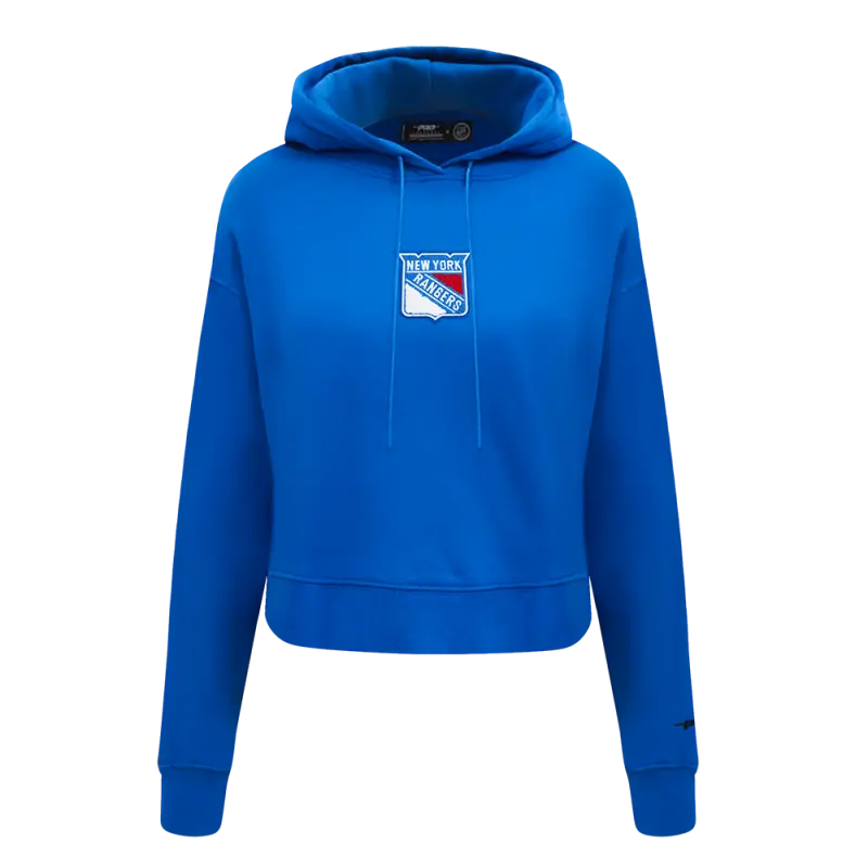 NHL NEW YORK RANGERS CLASSIC WOMEN’S FLEECE CROPPED PULLOVER HOODIE (ROYAL BLUE)