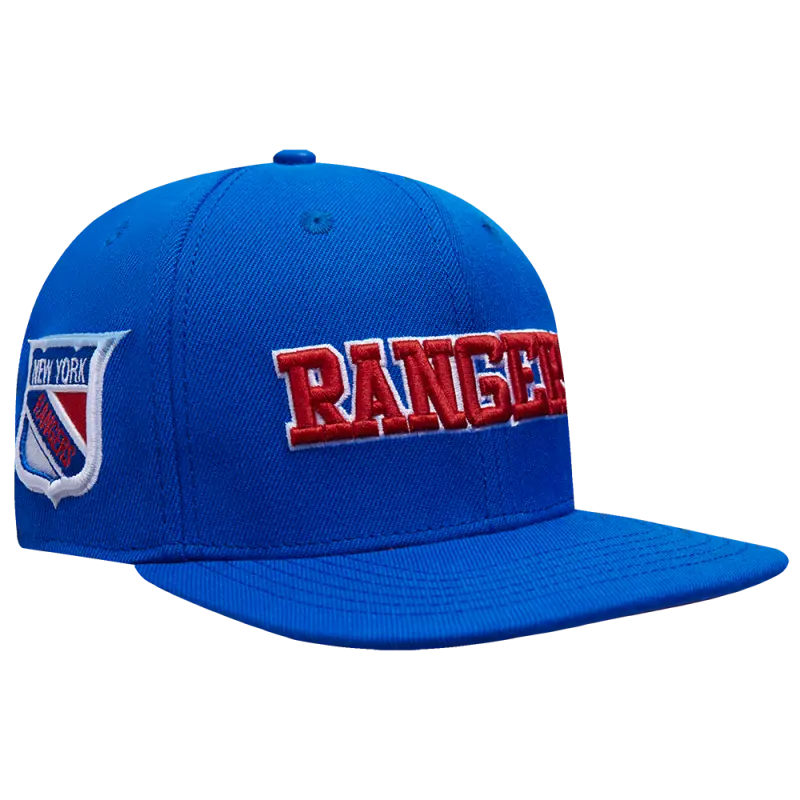 NHL NEW YORK RANGERS RETRO CLASSIC UNISEX WORDMARK LOGO WOOL SNAPBACK (ROYAL BLUE)