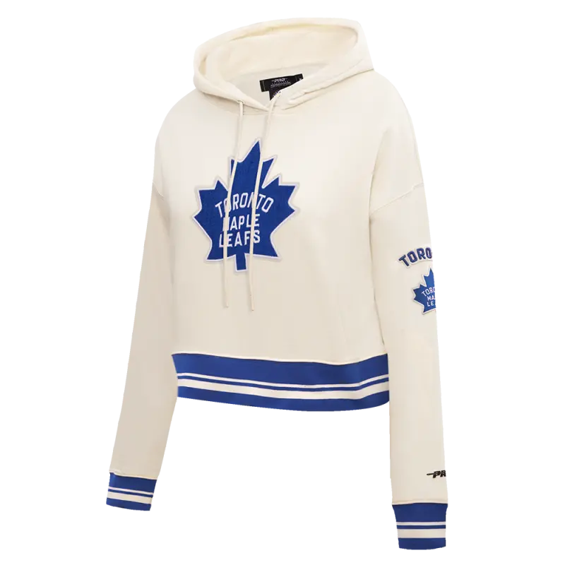 NHL TORONTO MAPLE LEAFS RETRO CLASSIC WOMEN’S RIB CROPPED PULLOVER HOODIE (EGGSHELL\/DODGER BLUE)