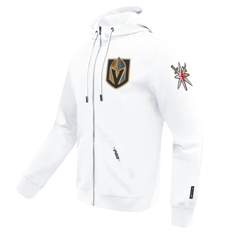 NHL VEGAS GOLDEN KNIGHTS CLASSIC CHENILLE MEN’S FULL ZIP PULLOVER HOODIE (WHITE)