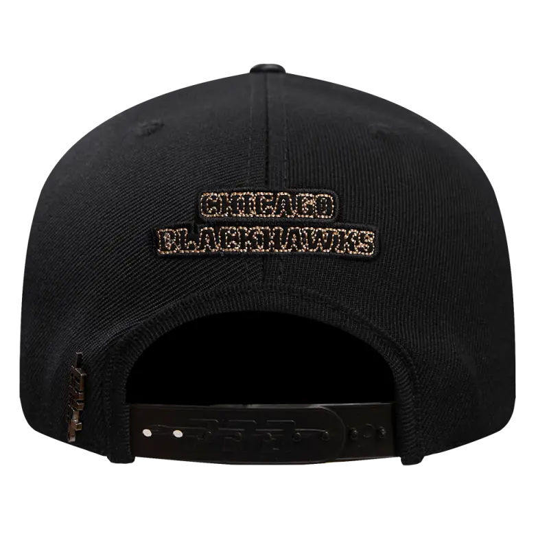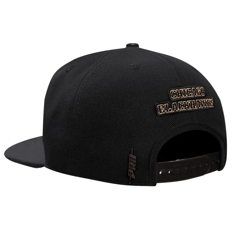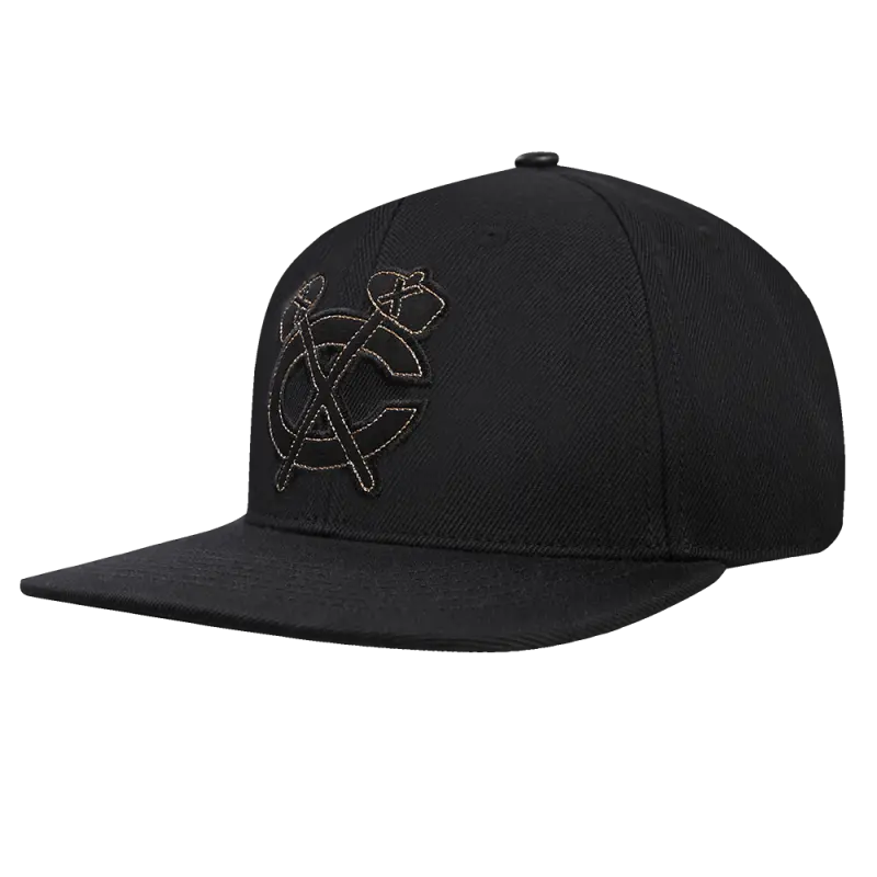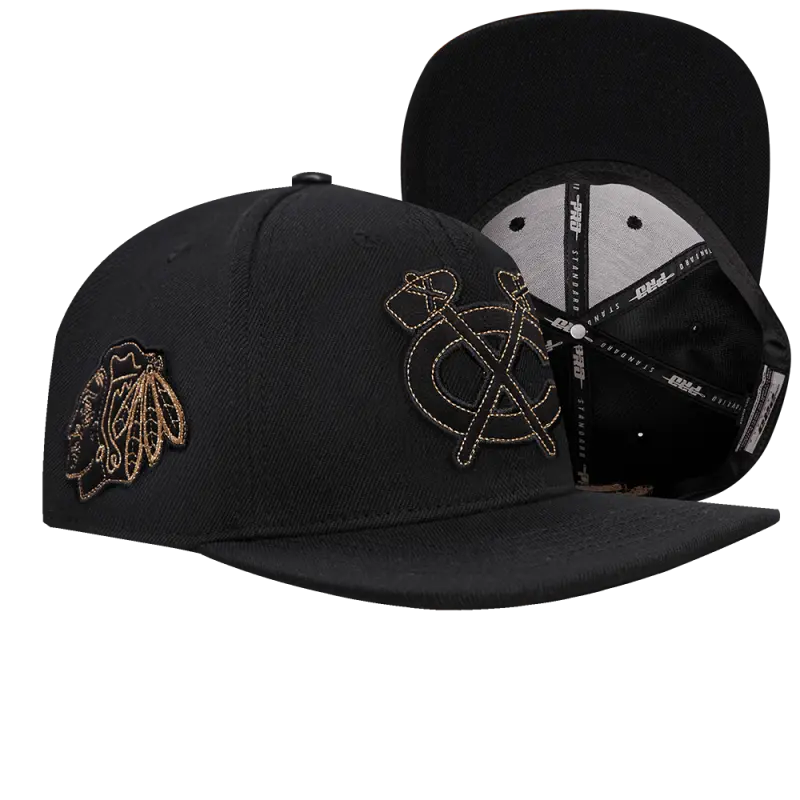 NHL CHICAGO BLACKHAWKS BLACK \u0026 GOLD WOOL SNAPBACK HAT (BLACK)