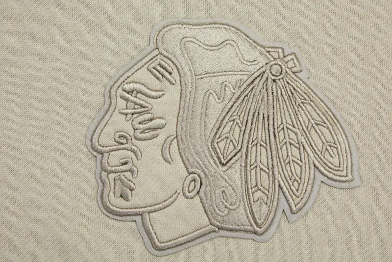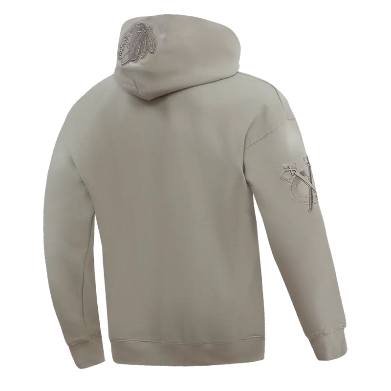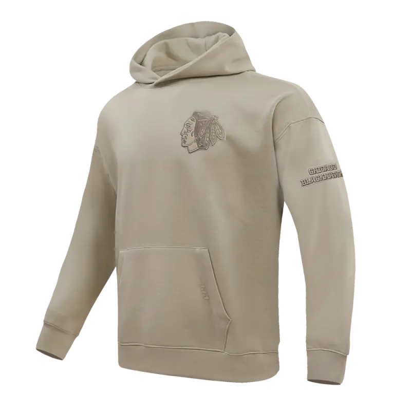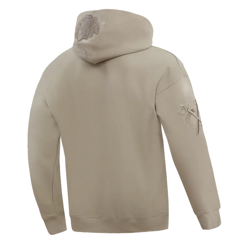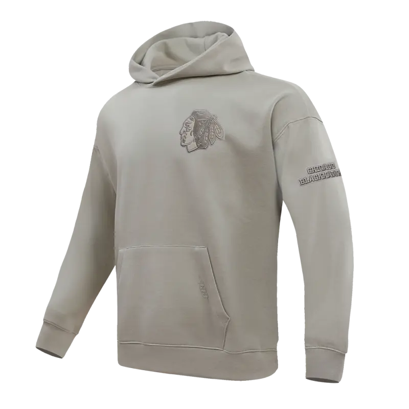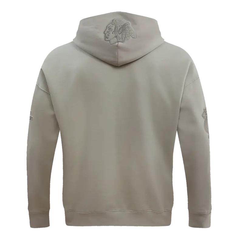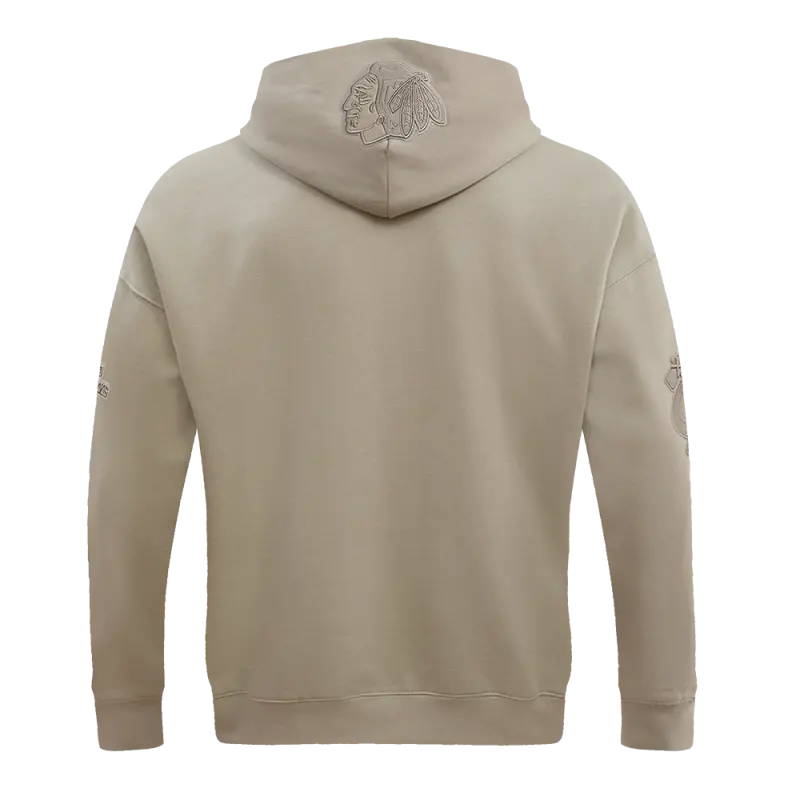 NHL CHICAGO BLACKHAWKS NEUTRAL DROP SHOULDER FLEECE PULLOVER HOODIE (TAUPE)