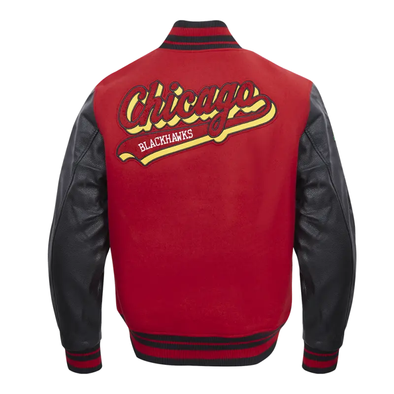 Home / Shop / Chicago Blackhawks / NHL CHICAGO BLACKHAWKS SCRIPT TAIL MEN’S RIB WOOL VARSITY JACKET (RED\/BLACK)
