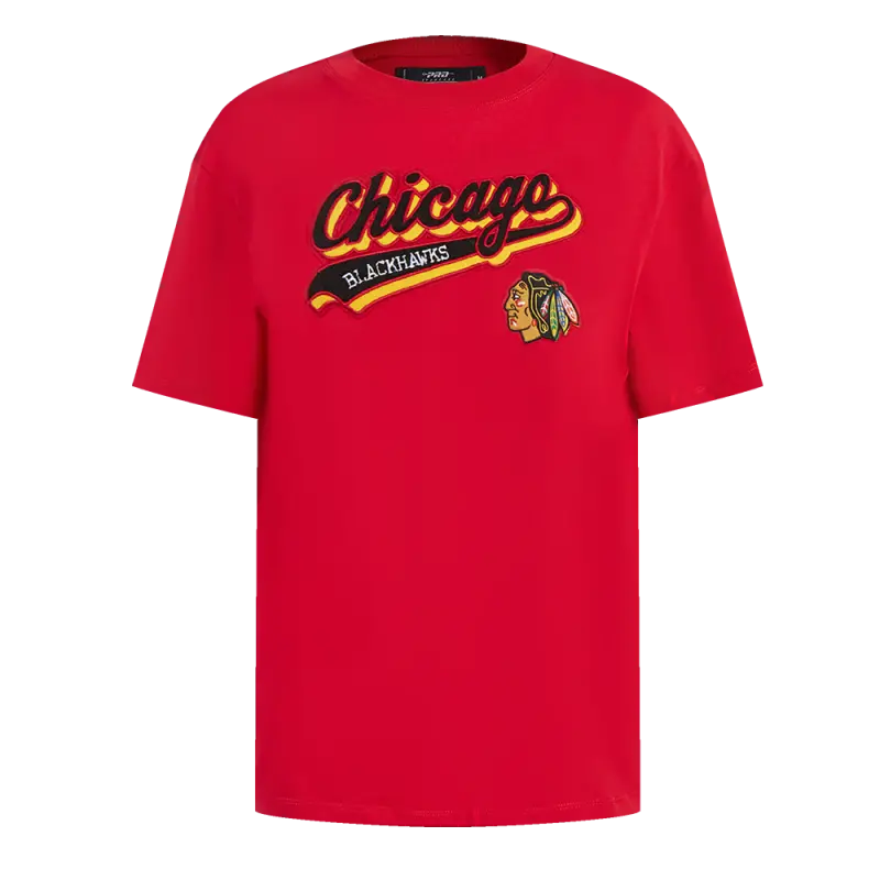Home / Shop / Chicago Blackhawks / NHL CHICAGO BLACKHAWKS SCRIPT TAIL WOMEN’S BOYFRIEND TEE (RED)