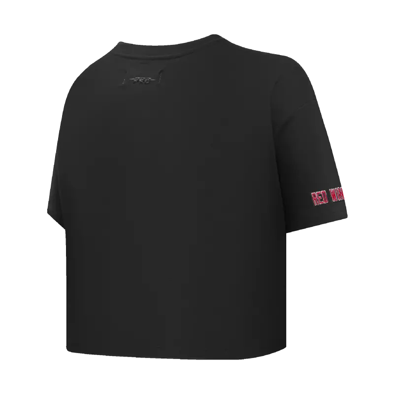 NHL DETROIT RED WINGS SCRIPT TAIL WOMEN’S SINGLE JERSEY BOXY TEE (BLACK)