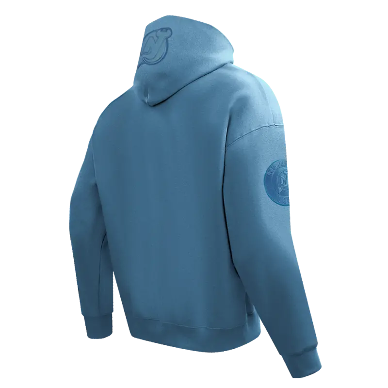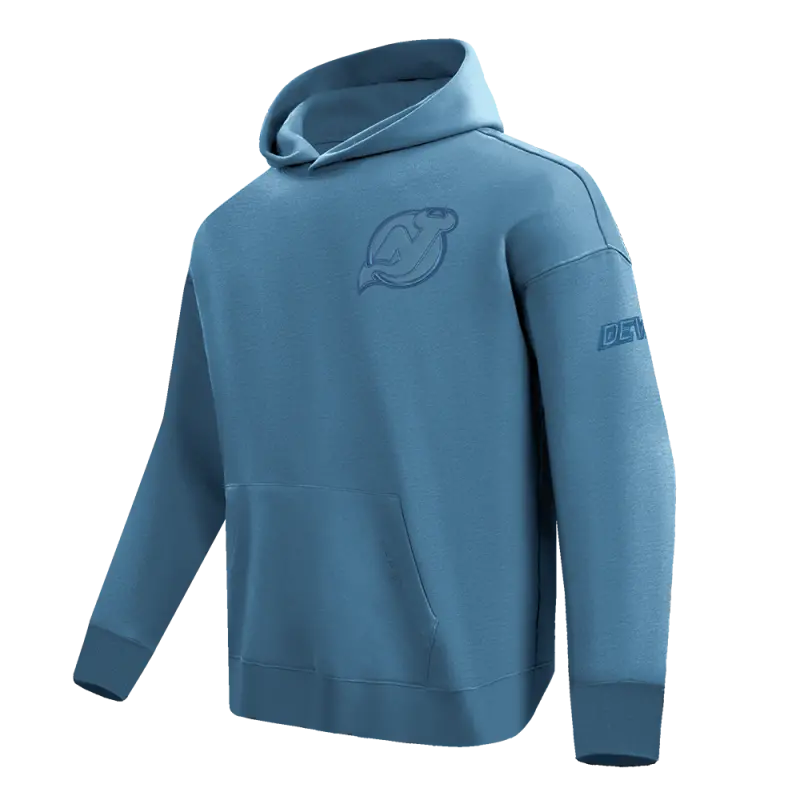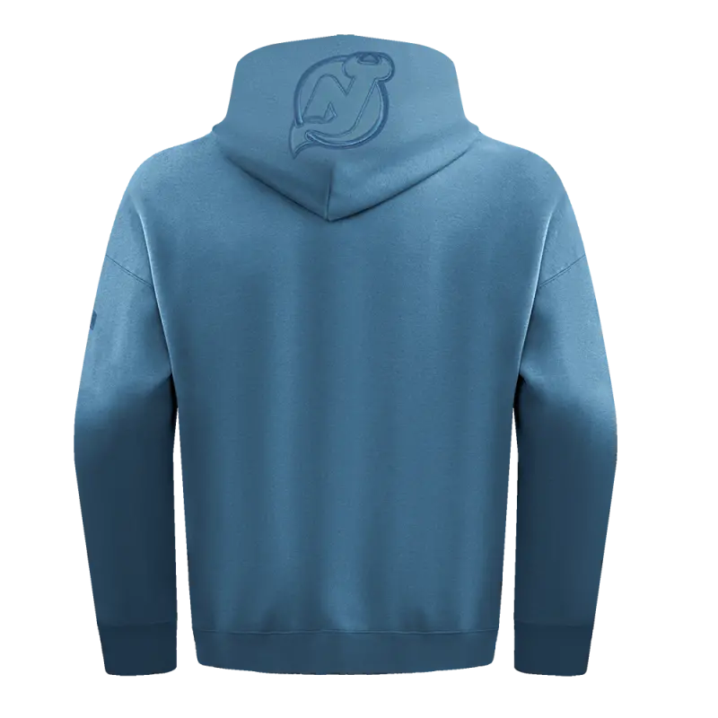 NHL NEW JERSEY DEVILS NEUTRAL MEN’S DROP SHOULDER FLEECE PULLOVER HOODIE (STEEL BLUE)