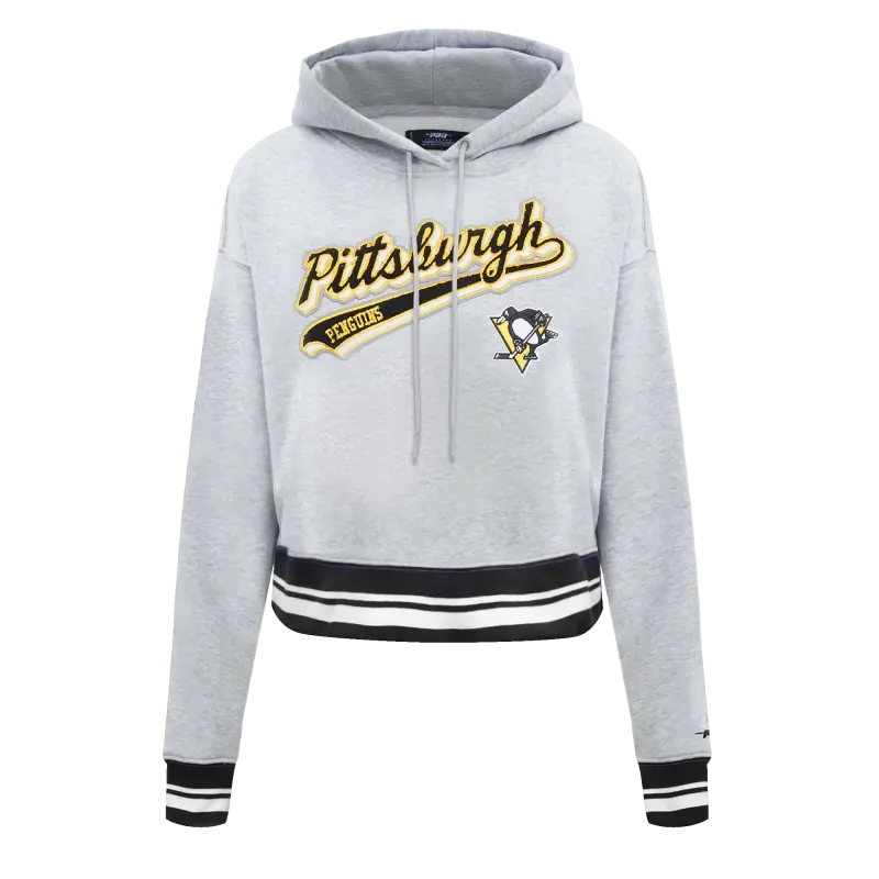 Home / Shop / Pittsburgh Penguins / NHL PITTSBURGH PENGUINS SCRIPT TAIL WOMEN’S RIB FLEECE CROPPED PULLOVER HOODIE (HEATHER GRAY\/BLACK)