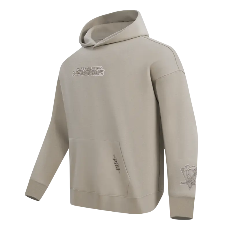 NHL PITTSBURGH PENGUINS WINGSPAN MEN’S DROP SHOULDER FLEECE PULLOVER HOODIE (TAUPE)