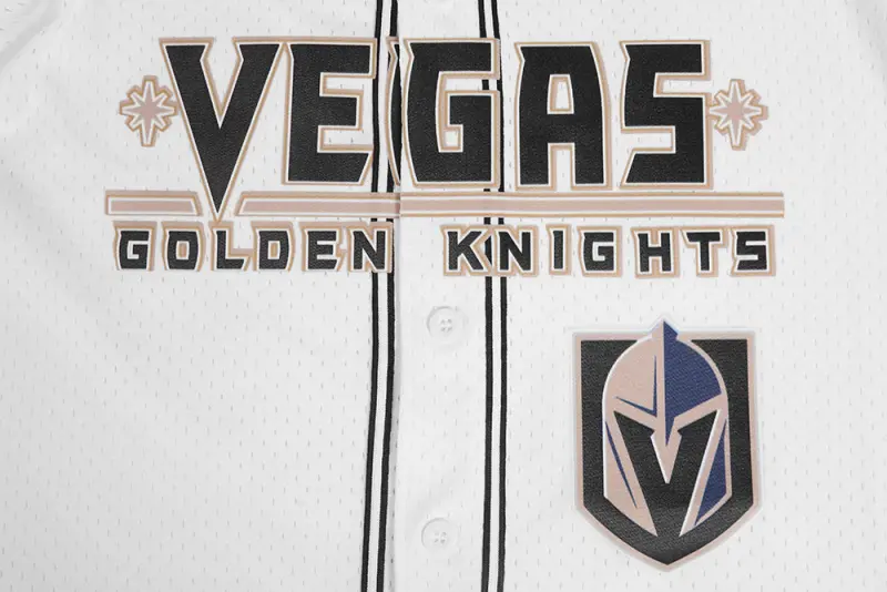 NHL VEGAS GOLDEN KNIGHTS CLASSIC MEN’S MESH BUTTON DOWN JERSEY (WHITE \/ BLACK \/ WHTE)