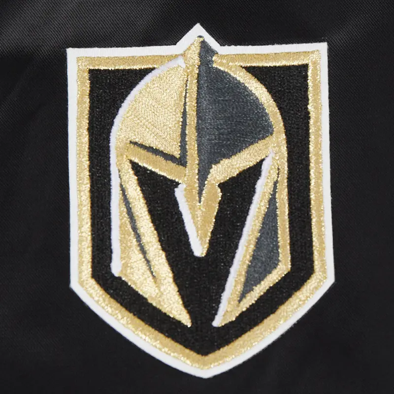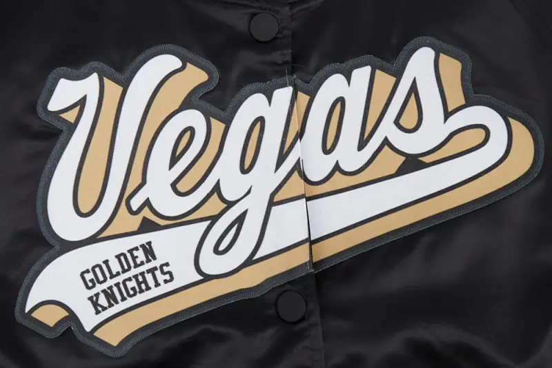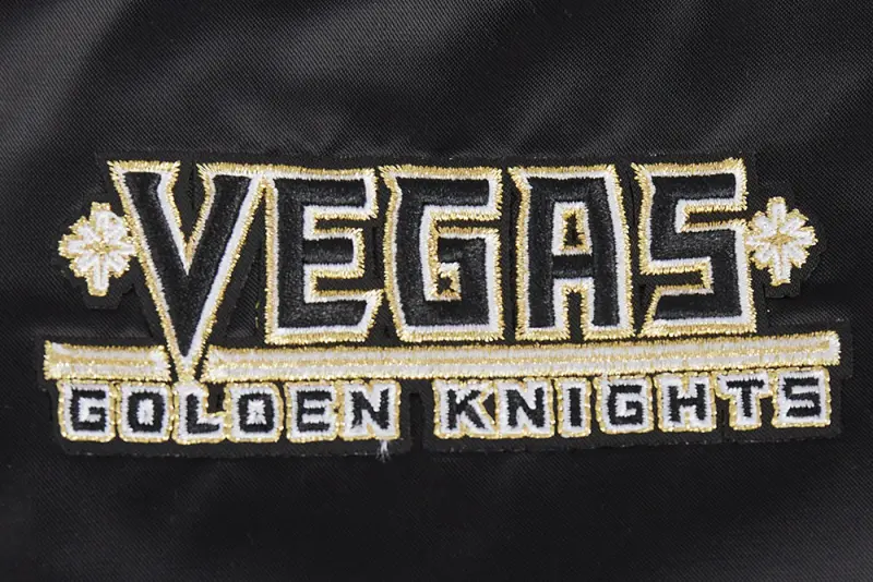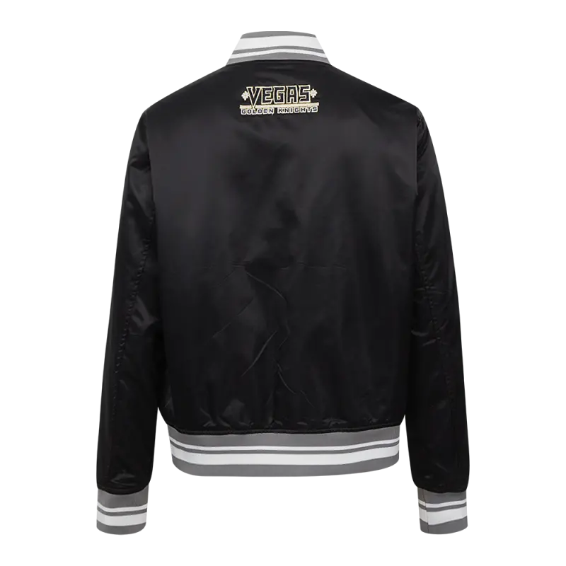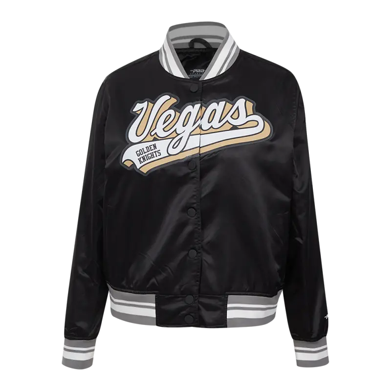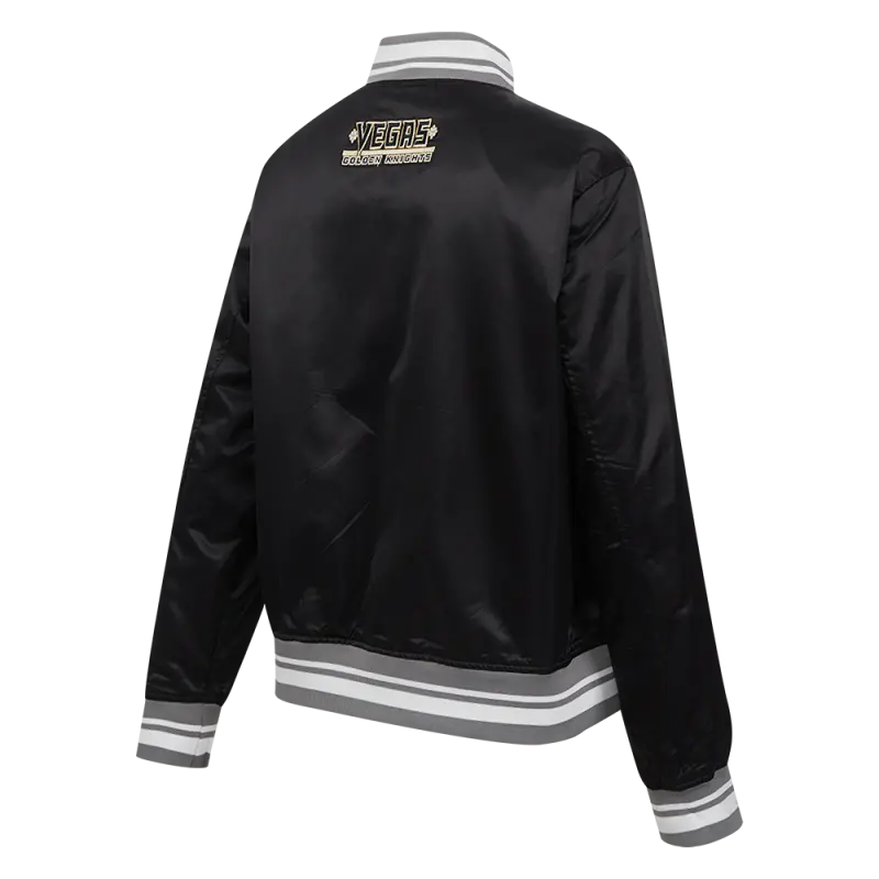 NHL VEGAS GOLDEN KNIGHTS SCRIPT TAIL WOMEN’S SATIN JACKET (BLACK\/GRAY)