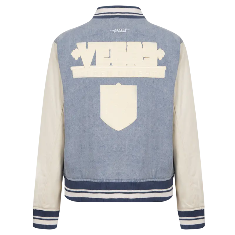 NHL VEGAS GOLDEN KNIGHTS VARSITY BLUES WOMEN’S W DENIM VARSITY JACKET (DENIM\/LINEN)