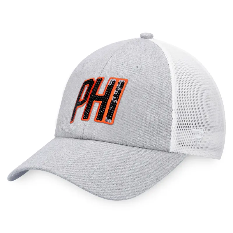 Home / Shop / Headwear / Women’s Fanatics Heather Gray/White Philadelphia Flyers Iconic Glimmer Trucker Snapback Hat