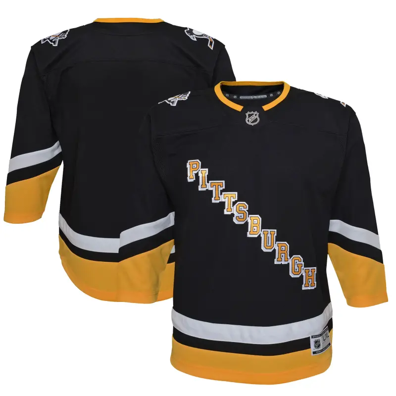 • Please Note: This product ships directly from the USA. Help your young fan show everyone how proud they are to be a Pittsburgh Penguins fan when you grab them this 2021/22 Alternate Premier Jersey. Featuring crisp Pittsburgh Penguins graphics, this will be the go-to jersey for your kiddo on game day! Add this sweet gear to their Pittsburgh Penguins collection today.